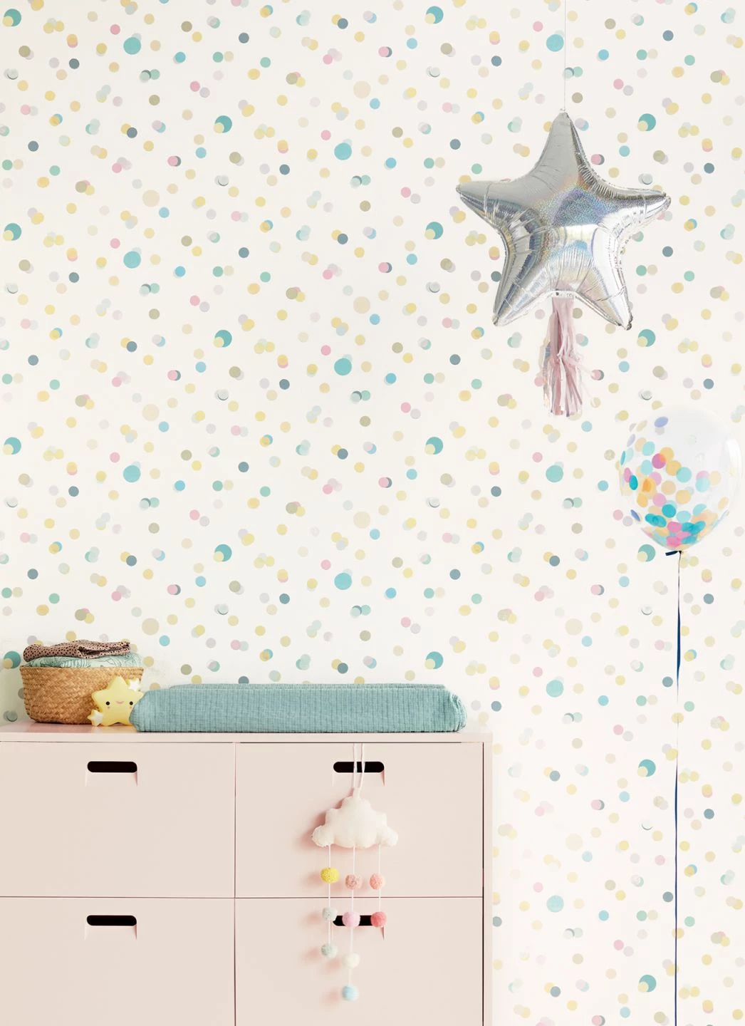 Die bunten Punkte in Hellgelb, Pastellgrün, Perlbeige, Türkisblau machen einfach nur Spaß und gute Laune. Das Kinderzimmer läuft zu Hochtouren auf und beflügelt die kreative Energie zum Lernen und Spielen. Dazu punktet die Kindertapete für Jungs und Mädchen mit waschbeständiger Oberfläche, die leicht zu reinigen ist.