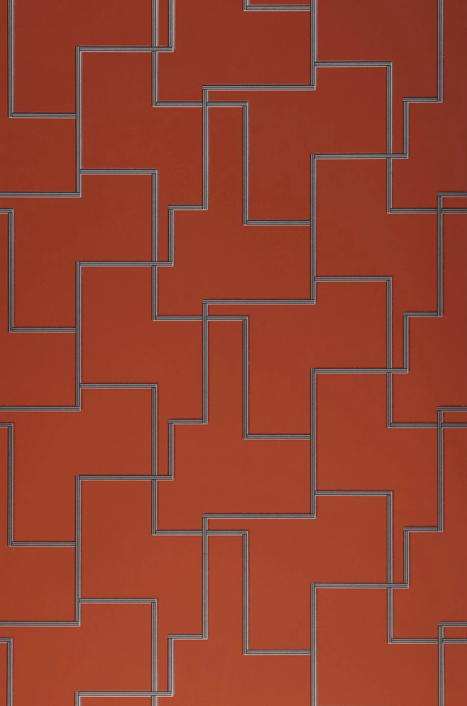 Leuchtendes Kupferbraun bildet den Hintergrund für ein faszinierendes, grafisches Labyrinth. Silber Schimmer und Schwarz weisen entsprechend der Lichteinstrahlung den Weg für das Auge und lassen den Blick ganz zufällig haften. Mit der hochwertigen Vliestapete können Sie Modern Art Feeling in favorisierte Räume zaubern.