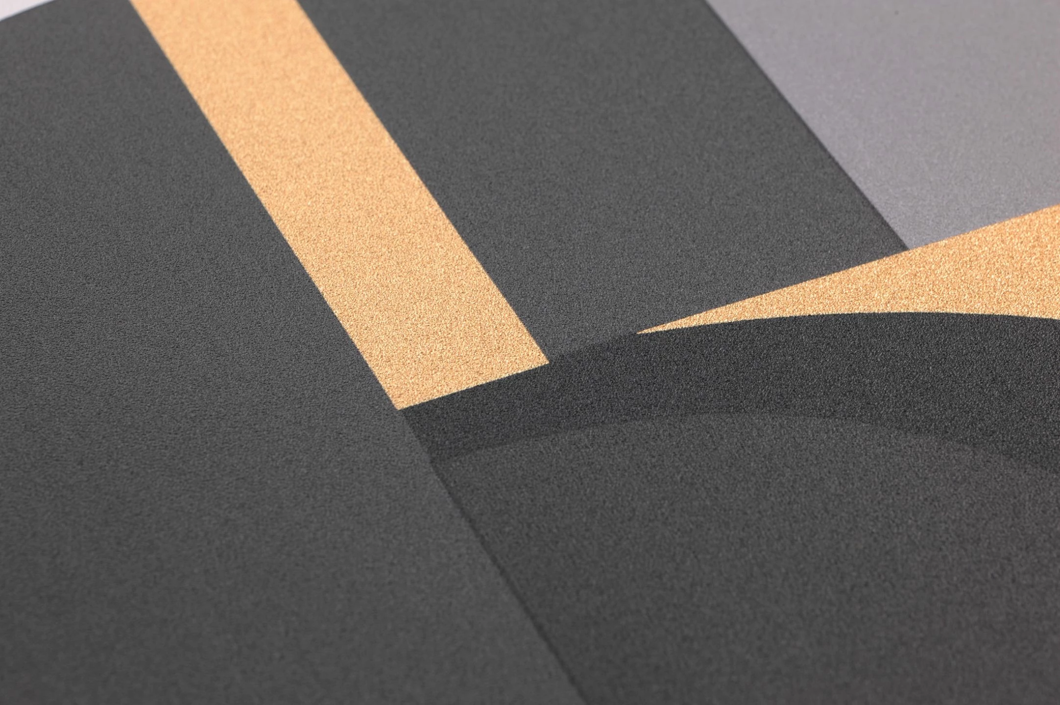 Verschiedene Grautöne, dazwischen Perlgold und Weiß – die zeitlose, kontrastreiche Farbgebung betont das Art-Deco-Muster aus flächigen Bögen und löst die große Ebene einer Wand auf in eine lebhafte Kulisse. Die neutralen Farben in Verbindung mit den goldenen Flächen lassen sich vielseitig kombinieren. Das scheuerbeständige Oberflächenmaterial aus Vinyl sorgt dafür, dass die Vliestapete auch im Badezimmer perfekt verarbeitet werden kann.
