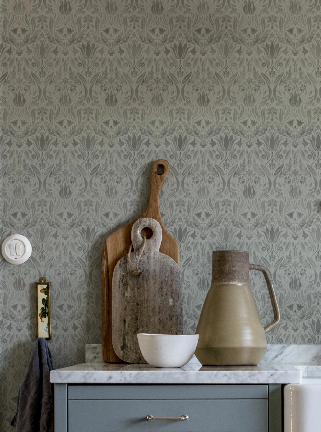 Das Auge will sich gar nicht satt sehen – Viele verschiedene florale Ornamente ergeben ein zauberhaftes Musterdesign im Stil des Historismus. Einrichtungen mit dem Flair vergangener Tage aber auch der Shabby Chic sowie der gehobene Landhausstil werden durch die klassische Vliestapete betont.