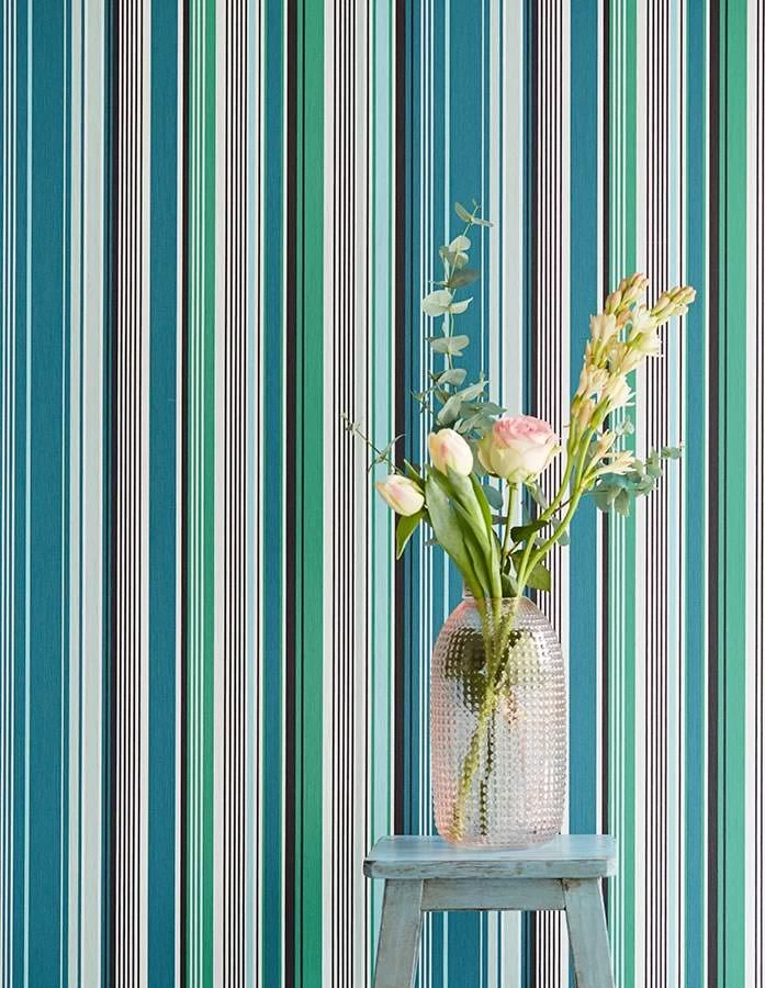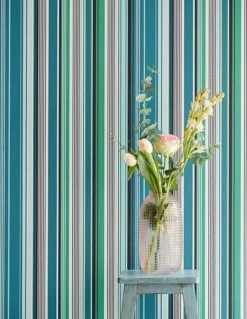 Sinnlich kühl mit einer gewagten Farbtextur aus Grüntönen, Schwarz und Weiß – Streifentapete Sinja verleiht dem Raum kunstvolle Tiefe und mystische Strukturen. Sehr gut dazu harmonieren sanfte Rosé- und Blautöne der Inneneinrichtung. Die scheuerbeständige Vinyloberfläche der Design Vliestapete ermöglicht den Einsatz auch in stark beanspruchten Räumen.