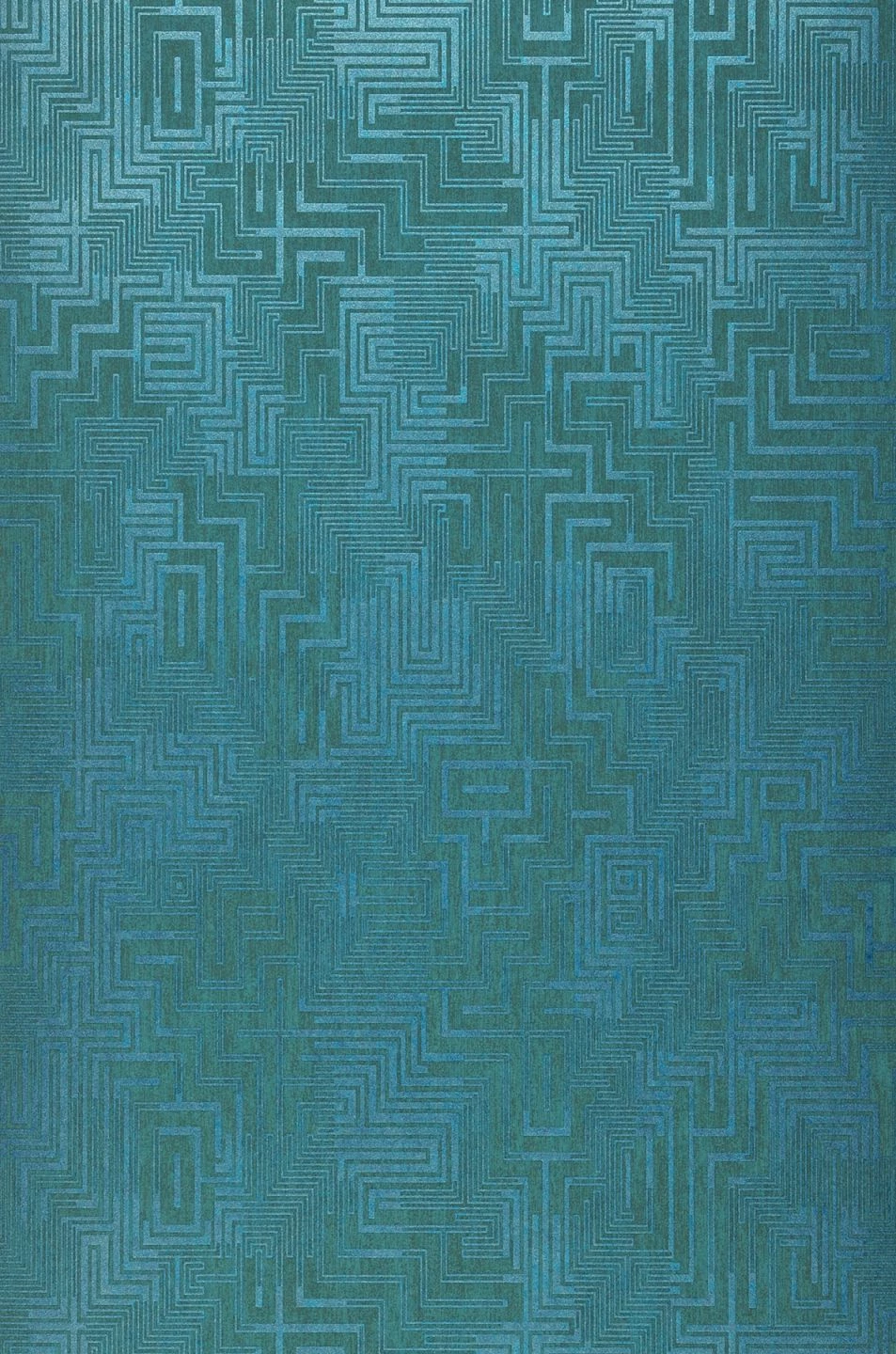 Verschieden breite Streifen und Winkel in Blau- und Türkistönen, die an die Farben des Wassers erinnern, verbinden sich zu einem Gesamtbild klarer geometrischer Formen. Der besondere Reiz der Vliestapete liegt im Zusammenspiel des schimmernden Wasserblau mit den matten Streifen in Pastelltürkis und Schilfgrün. Das Licht, das vom Fenster oder von künstlichen Lichtquellen auf die Tapete fällt, erzeugt angenehme Reflexe und einen lebendigen Eindruck.