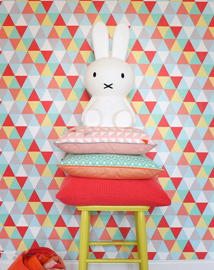 Ecke für Ecke überzeugt unsere Tapete Tamesis in Gelb, Grün, Pastellblau und Rot und ist so nicht nur für Kinder eine gelungene Wandgestaltung.