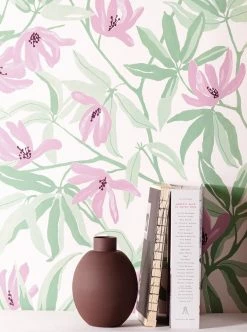 Ausladende Blumenranken umschließen Ihren Raum mit Tapete Tarbana und umgeben Sie mit einem Blütenschmuck, der das ganze Jahr nicht verwelkt. Die schlanken Blütenblätter in zartem Pastellviolett, versehen mit Details in schimmerndem Dunkelviolett, und die zartgrünen und patinagrünen schmalen Blätter kreieren eine helle, frühlingshafte Atmosphäre für Ihr einladendes Wohnzimmer oder Ihr romantisches Schlafzimmer.