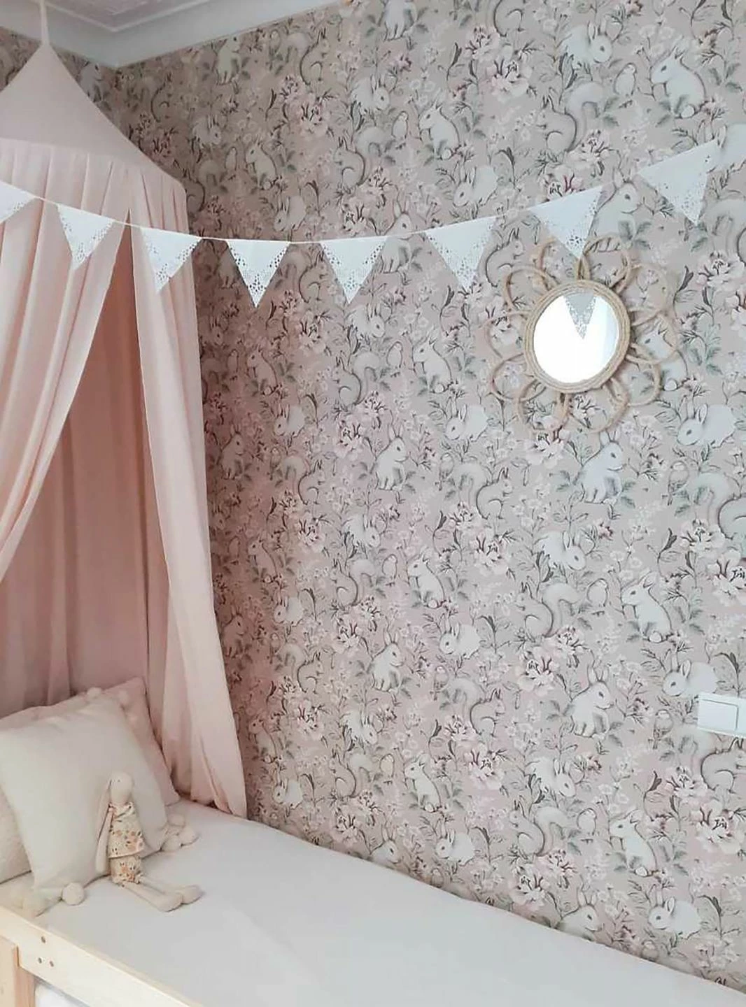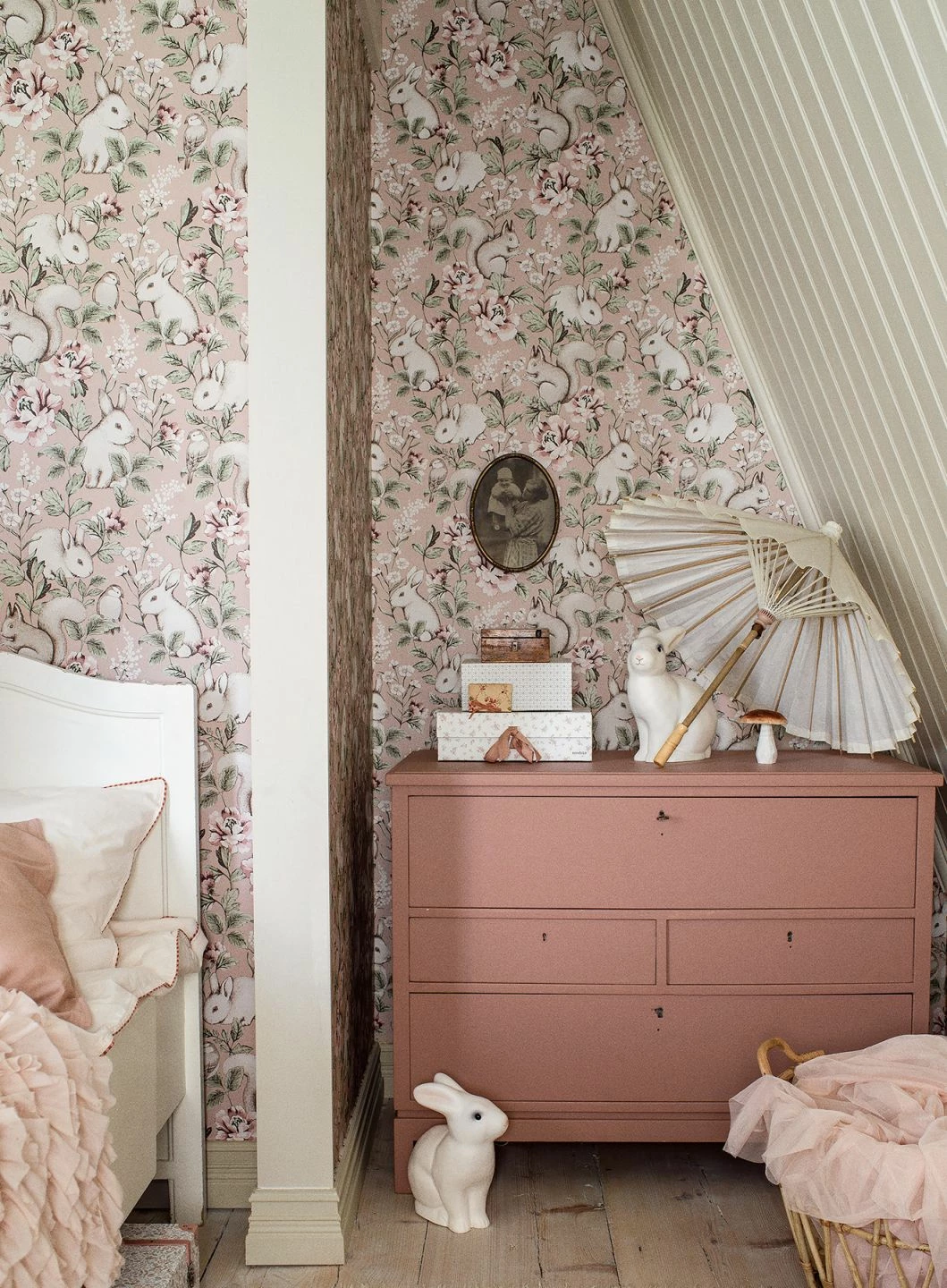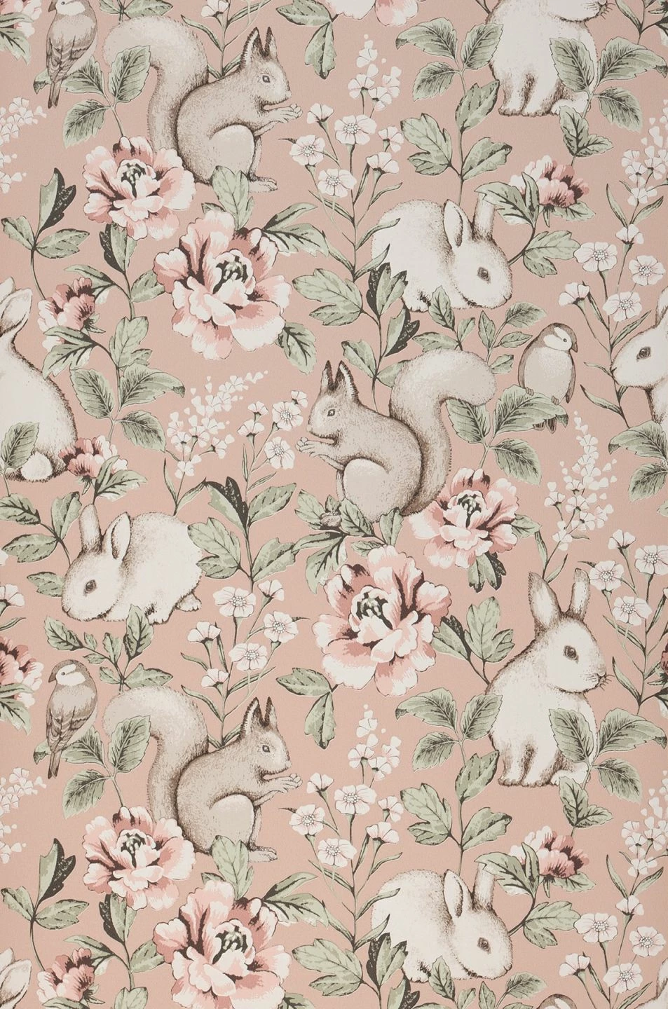 Bezaubernde Eichhörnchen, Kaninchen mit großen Augen und zierliche Meisen tummeln sich auf dieser Tiermotiv-Tapete zwischen großen Blumen. Pastellfarben – Cremeweiß, Blassgrün, Rosenholz und Weißbraun – auf dem hellbraunen Untergrund geben der Vliestapete eine zarte romantische Anmutung. Für ein verspieltes Kinderzimmer oder eine Portion Romantik im Schlafzimmer, kombiniert mit Weiß oder einer der passenden Farben, ist „Twiggy“ perfekt.