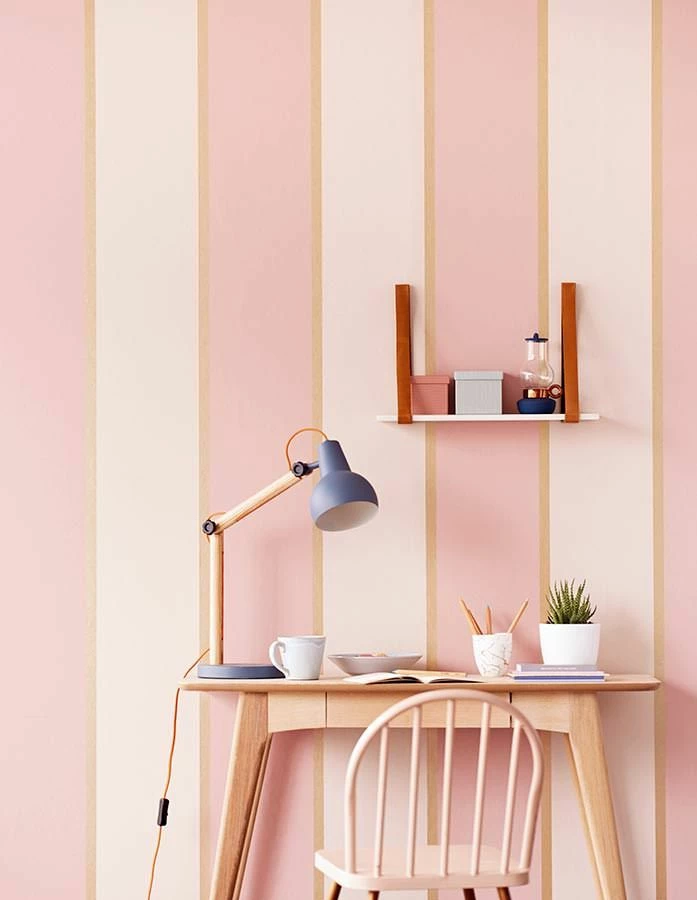 Wahrhaft majestätisch präsentiert sich Streifentapete Tyra als Wandschmuck für stilvolle und gehobene Interieurs mit aparter Romantik. Blockstreifen in Creme und Hellrosa werden von schmalen Perlgoldstreifen, die sanft im Licht schimmern, durchzogen. Die harmonische und warme Farbkombination verleiht dem Raum das Plus an Behaglichkeit.