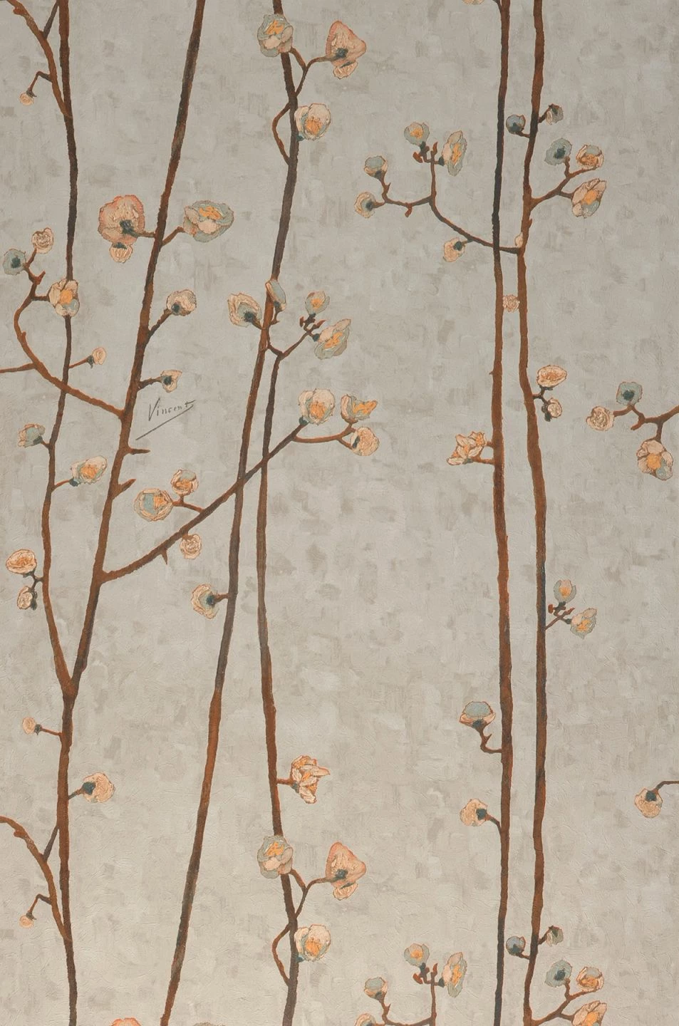 Ein Farbenspiel, das die Natur nicht schöner inszenieren könnte, offenbart sich auf der floralen Designtapete im Stil des alten Meisters der modernen Kunst. Hellbeigegrau, Blassgrün, Creme, Graubraun und Pastellgelb verleihen den blühenden Zweigen eine herb-markante Note und einen besonderen Ausdruck.
