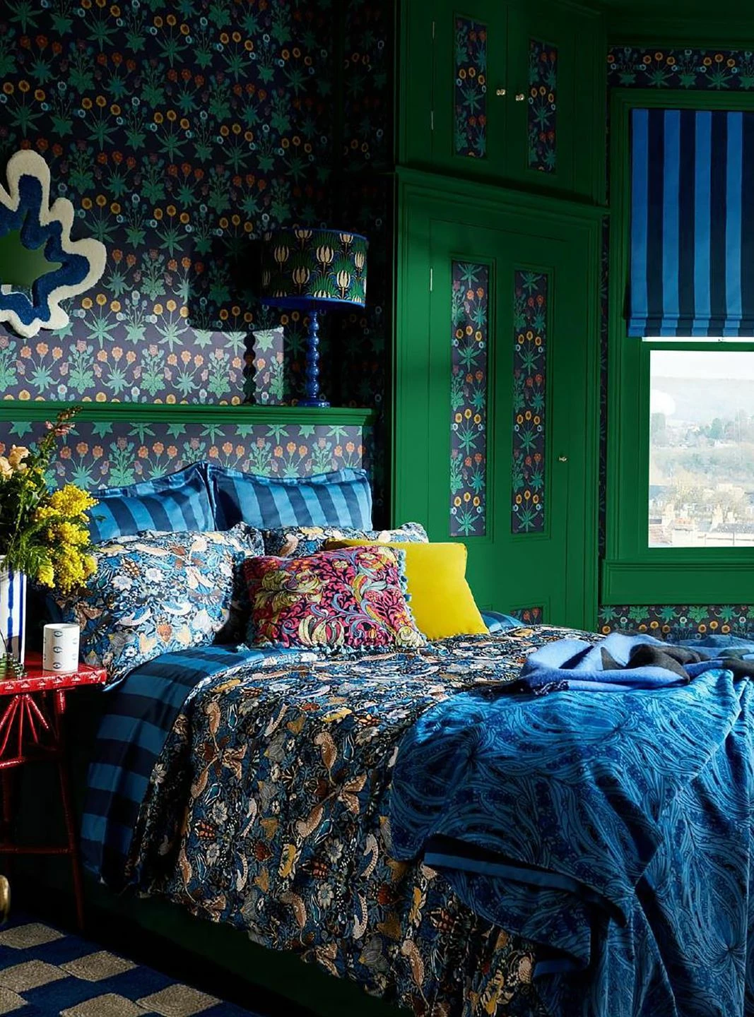 - MusterfarbeBlautöne, Hellgelb, Korallenrot, Maigrün