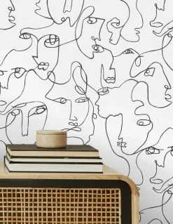 Wie beim flüchtigen Blick auf eine Menschenmenge, in der man wenige Details erkennt, deren Gesichter jedoch den Blick auf sich ziehen, formen scheinbar zufällig verlaufende Linien Augen und Münder, Nasen und Haaransätze. Gesichter mit ihrem ganz persönlichen Ausdruck entstehen. Die schwarzen Umrisse auf dem weißen Grund bewahren die Leichtigkeit des Gesamteindrucks und lassen sich für einen gastfreundlichen, die Kommunikation anregenden Raum wunderbar mit schwarzen Deko-Elementen, aber auch mit kräftigen Primärfarben kombinieren.