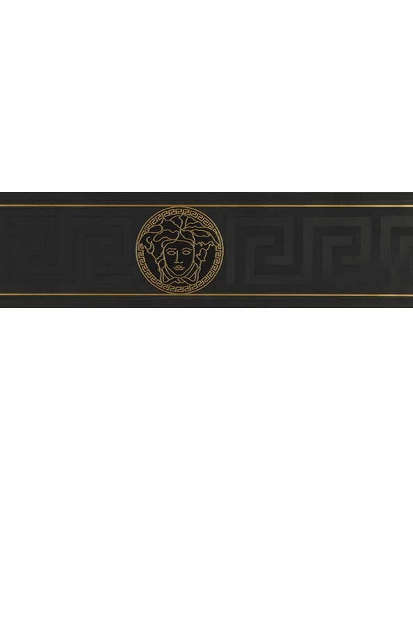 Die Versace Bordüre in Gold und Schwarz mit dem berühmten Medusa Kopf passt hervorragend zu unserer Tapete Solea. Setzen sie einen Akzent an der Wand mit unserer Borte Arabella als schmückendes Element.